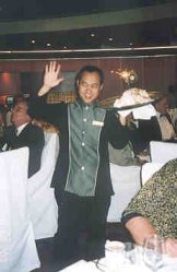 Waiter 'Pujo' carrying the Baked Alaska
