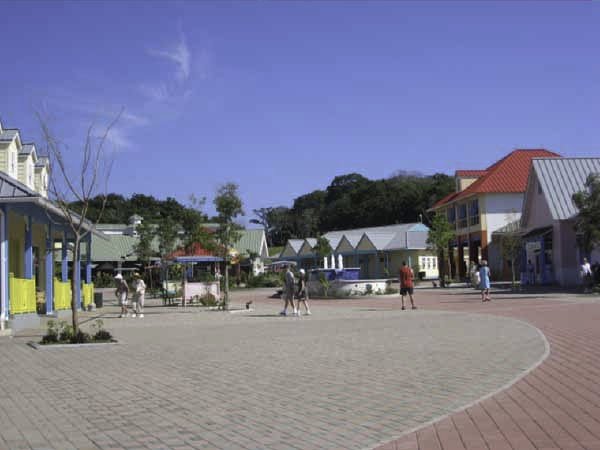 View from the ship of the new shopping plaza at the pier.