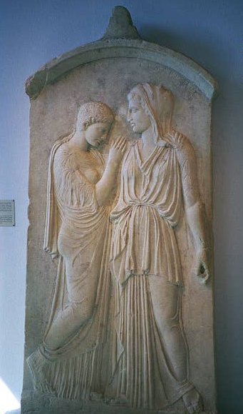 A carved marble funeral pillar from 5th c. BC. Crito, the daughter,