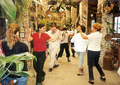 Dancing in the aisles after lunch. (Can you find the dancing priest?)
