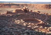 | From Sedona, we start north towards Cameron.The first photos below are of the Sunset Crater Volcano and rocks in that area. Then there were some spectacular ruins in the middle of the canyon. One, the Wupatki National Monument, had about a hundred rooms originally. The ruins were situated so the Indians could see 360 degrees around. |